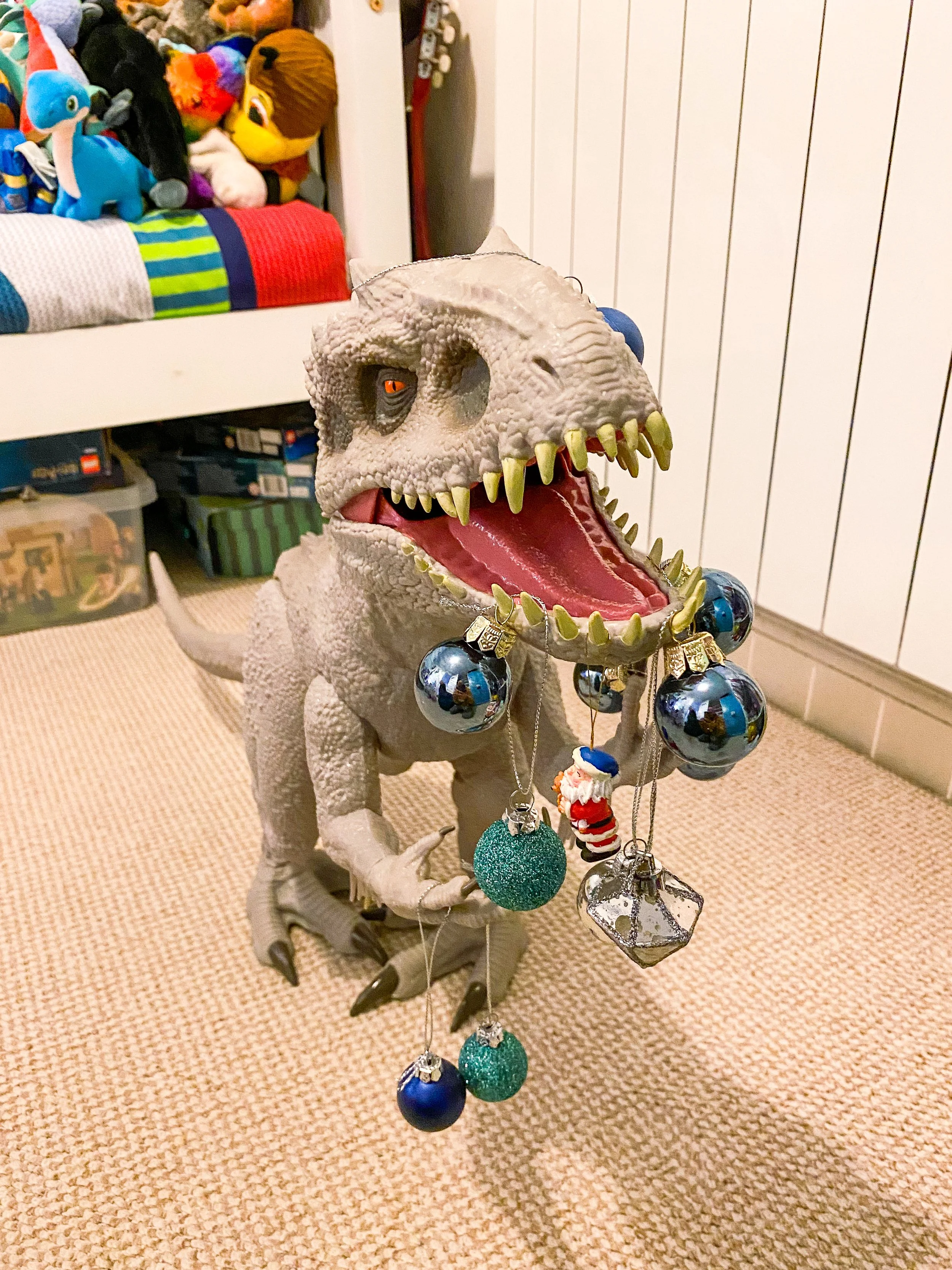 DINOSAUR December 04, 2022 04.12.22Finey decided to take the tree decorating to the next level by decorating his dinosaur as well. Love how his little mind works bless him. iPhone 11 Pro